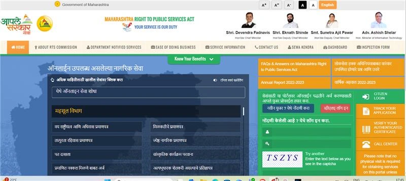 We will use Maharashtra's Aaple Sarkar as the example, but the process is similar across states.