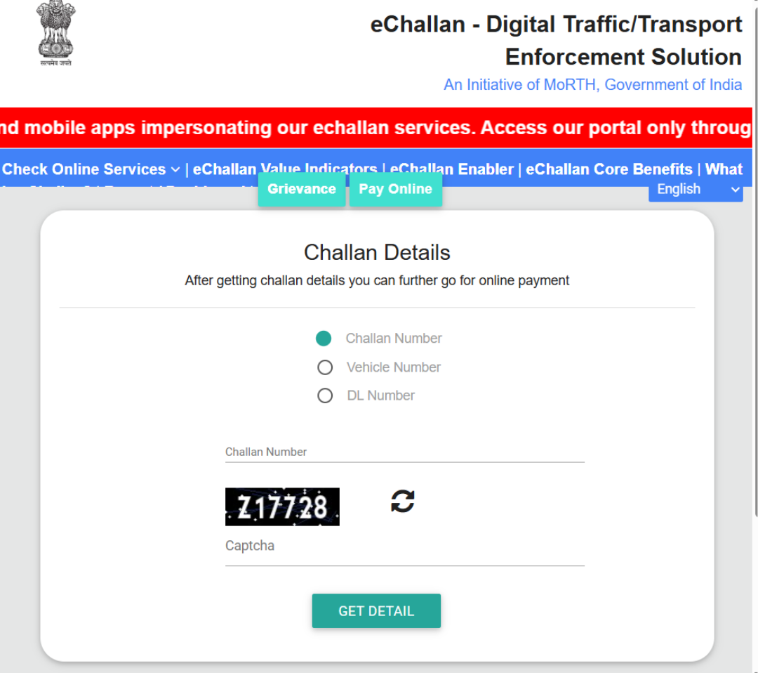 Step 3- If the challan appears, you can pay the fine online, without visiting any physical location.