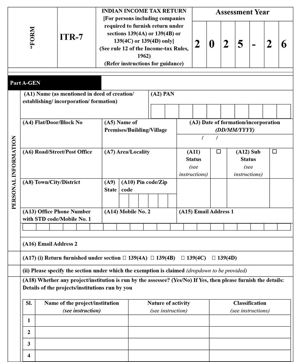 Charitable trusts, political parties, and exempt institutions may need to file ITR-7.